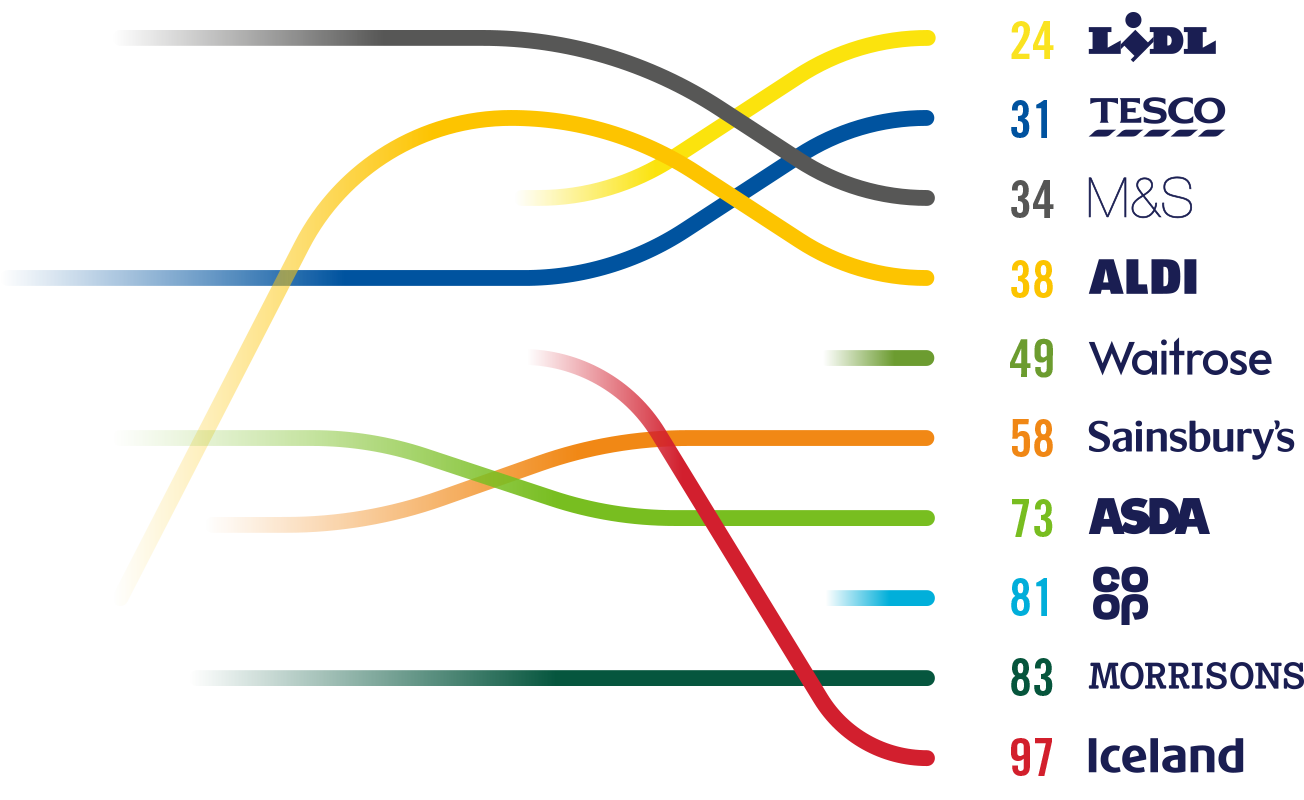 The supermarket wars are a British obsession, and in the last few years the competition has really heated up. This year’s survey reflects the new landscape, with Lidl replacing M&S as the number one grocer.